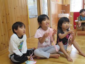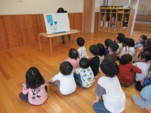 新入園児歓迎会・誕生会がありました。歓迎会ではメダルをもらい嬉しそうな表情を浮かべていました。誕生会では、インタビューをしたり、保育者の出し物をみたりとお祝いを楽しみしました。